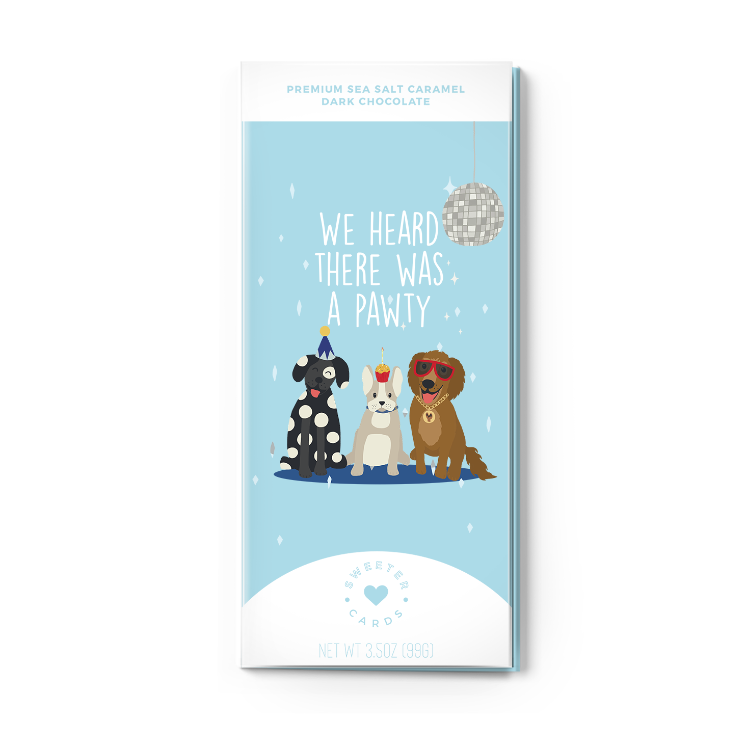 Dog Pawty Sea Salt Caramel Dark Chocolate Card