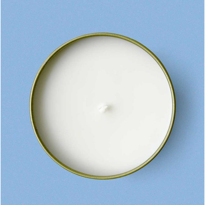 Each candle is made with 100% soy wax, hand-poured in a perfect gold tin and finished with an eco-fabric wick.