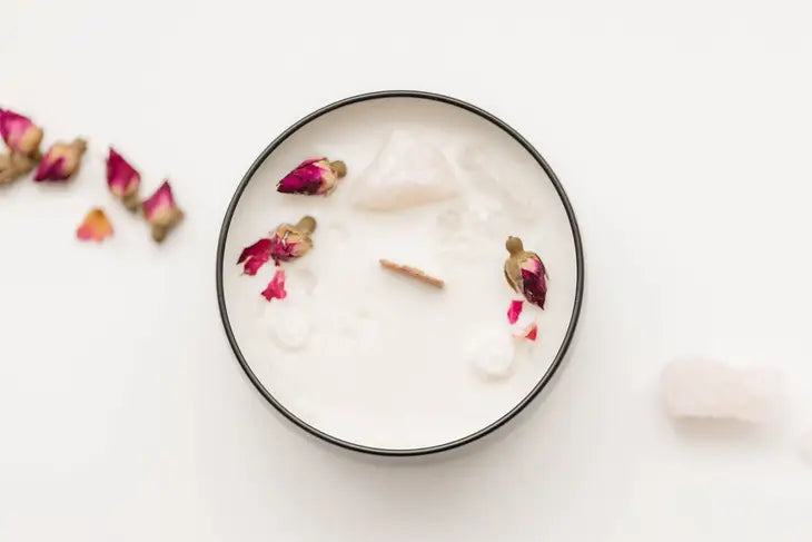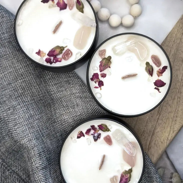 Unwrap a unique and luxurious unboxing experience with this handcrafted crystal candle, made in Canada with the finest ingredients. Each candle is a true work of art, created by skilled artisans to ensure exceptional quality, and comes with a unique, hand-selected crystal hidden inside. The wooden wick crackles as it burns, creating a warm glow and spreading the gentle aroma of natural essential oils throughout your space. The crystal inside will enhance your mood and balance your energy, making it a truly special addition to your self-care routine. This luxury candle is not only a treat for the mind, body, and soul, but also makes a perfect and unique gift for any occasion.