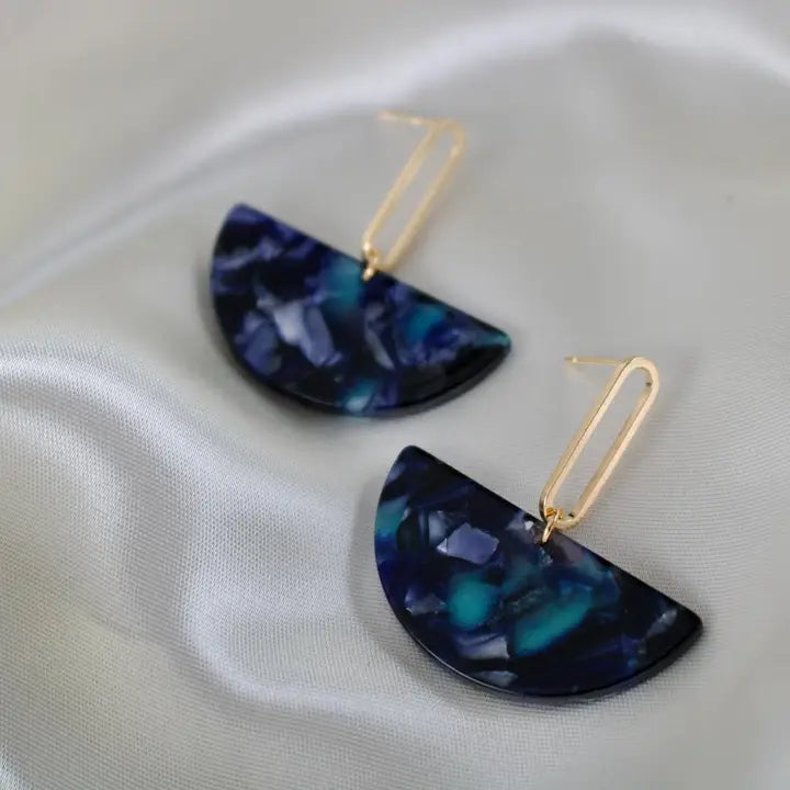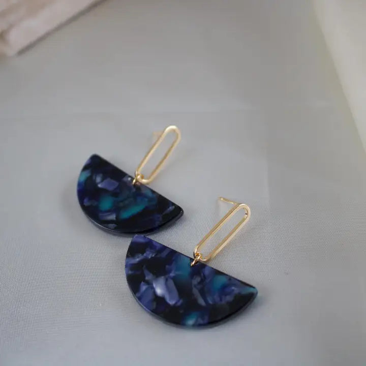 Esme - Navy Half Circle Acetate Earrings