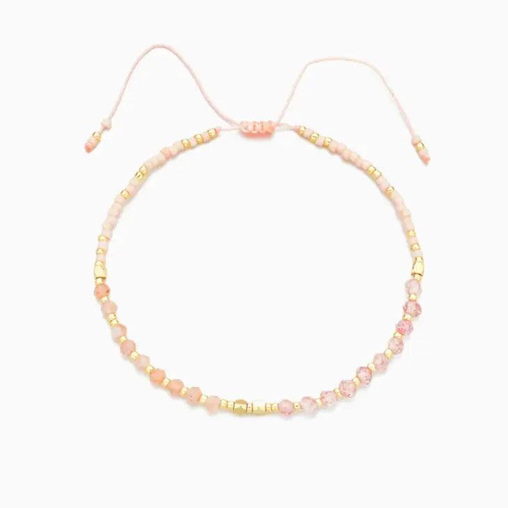 Natural stone and seed beads with gold plated details on a nylon adjustable cord that fits wrists sizes 6.5 to 8.5"