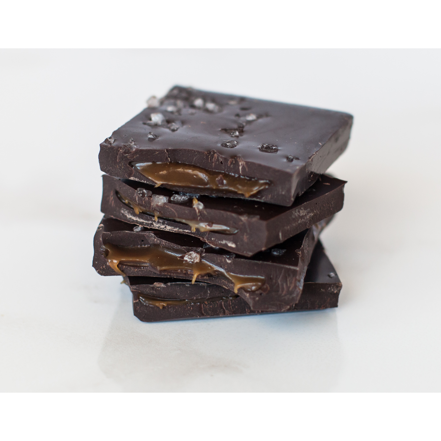 Dark chocolate sea salt caramel is handmade in St. Louis, using Fair Trade Certified™ ingredients like soft vanilla caramel, made with cane sugar, fresh whipping cream, butter and Madagascar vanilla, all topped with Mediterranean sea salt. Each batch is hand stirred in copper kettles and made with love to ensure every single Sweeter Card is full of deliciousness that will win the card-giving game.