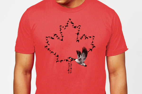 Did you know that geese on the ground are called a gaggle, but when they are in flight they are called a Skein? Celebrate all things Canadian with this beautiful shirt.