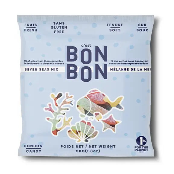La boîte à bonbons is committed to supporting causes that speak to them. Seven Seas Mix will take you on a journey to the bottom of the ocean! Each candy contributes to cleaning up the oceans thanks to their partnership with 1% for the Planet! The sea mix offers an assortment of fruit-flavored candies such as starfish, worms, sharks and more.