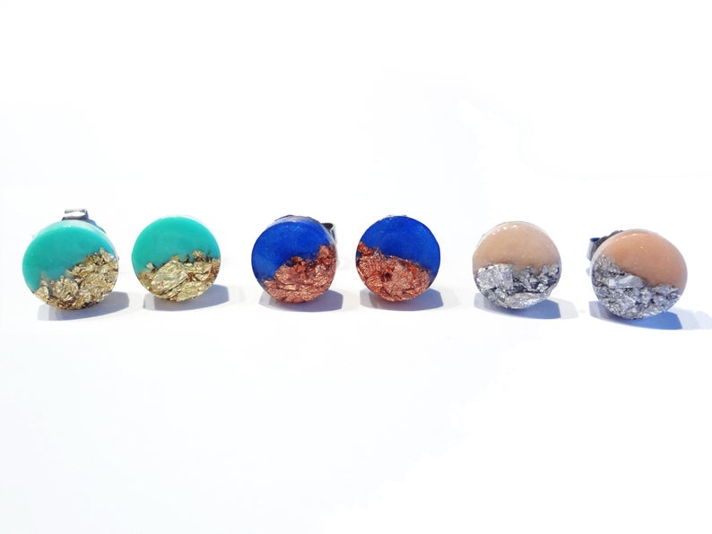 Circle resin studs with flakes of shine - gold, silver or bronze - like Olympic medals!