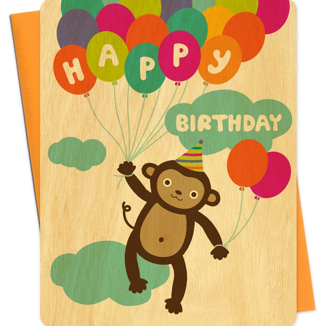 Birthday Monkey Wood Card