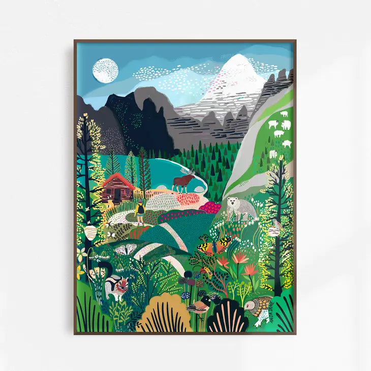 There is magic and a quiet sense of tranquility in Anja Jane’s work. The Pacific Northwest Artist has translated her deep connection to Mother Nature into intricate art prints and postcards featuring nature scenes from North America, from the lavish jungle of Hawaii to the enchanting British Columbia coastline or quaint tree-lined Montreal streets. In her nature scenes of luscious forests, vibrant flowers, whimsical creatures and sun-kissed mountains over turquoise waters, the folksy charm of her Norwegian and Polish heritage intertwines with the breathtaking landscape of the Pacific Northwest – now home for her.