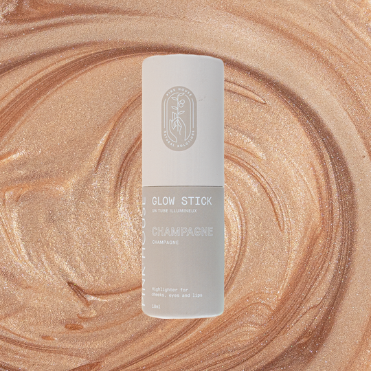 Enhance your natural glow with multi-use, creamy Glow Sticks. Glow Sticks have a slight shimmer that gives skin an instant, radiant glow. Buildable in nature, they can be used for that no-makeup makeup look on bare skin or layered on top of foundation for a bold look. Completely natural, vegan, and cruelty-free, this product is infused with three types of oils to keep skin moisturized while giving a dewy finish. Champagne is a universally flattering shade that creates a warm, sun-kissed glow. A deep gold tone with a pearlescent finish, it gives cheeks a luminous pop while letting your natural beauty shine through.