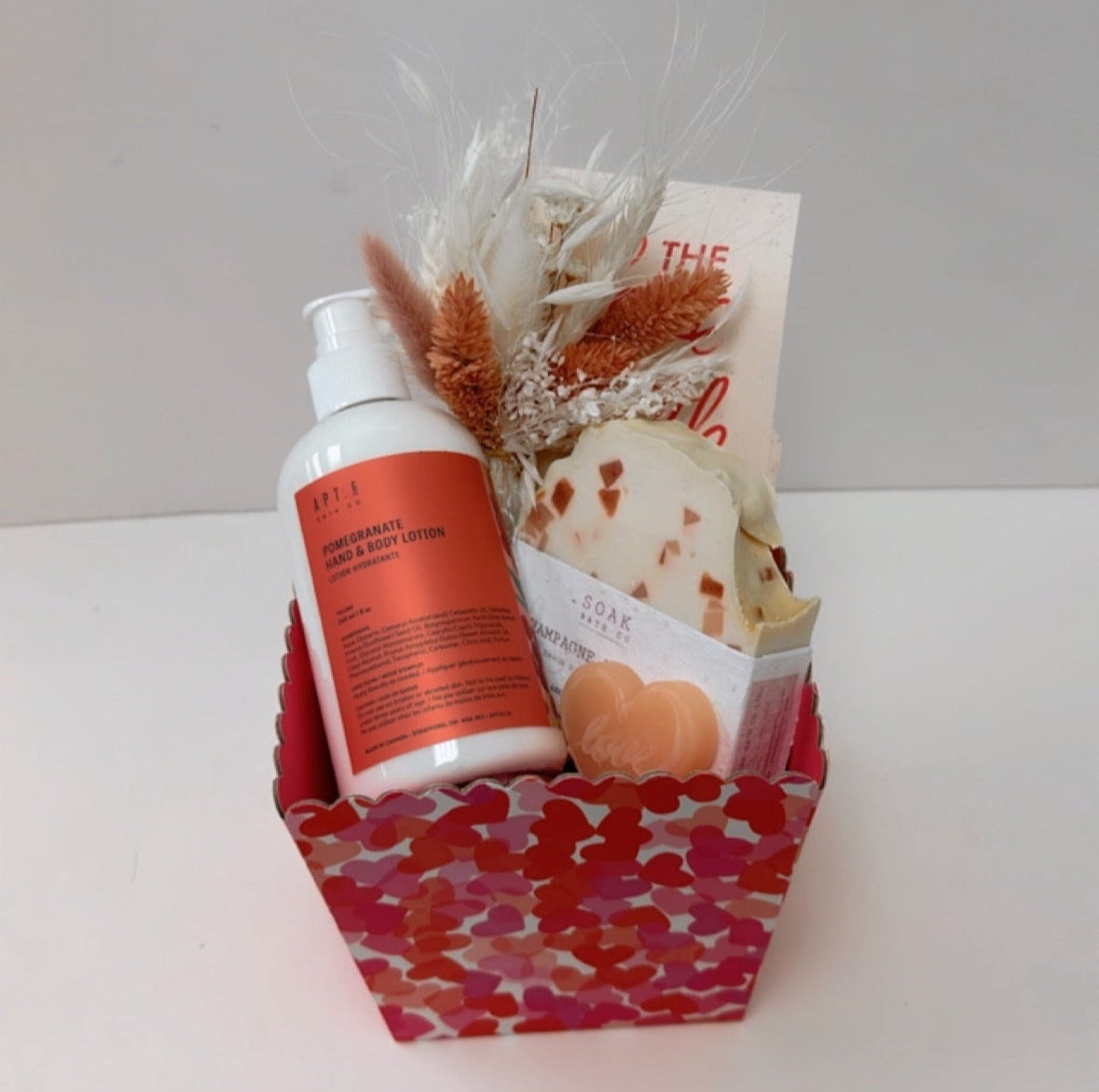 The CHAMPAGNE LOVE Box is a gorgeous gift box with bath soak, body lotion, champagne soap and an extra special love heart soap.