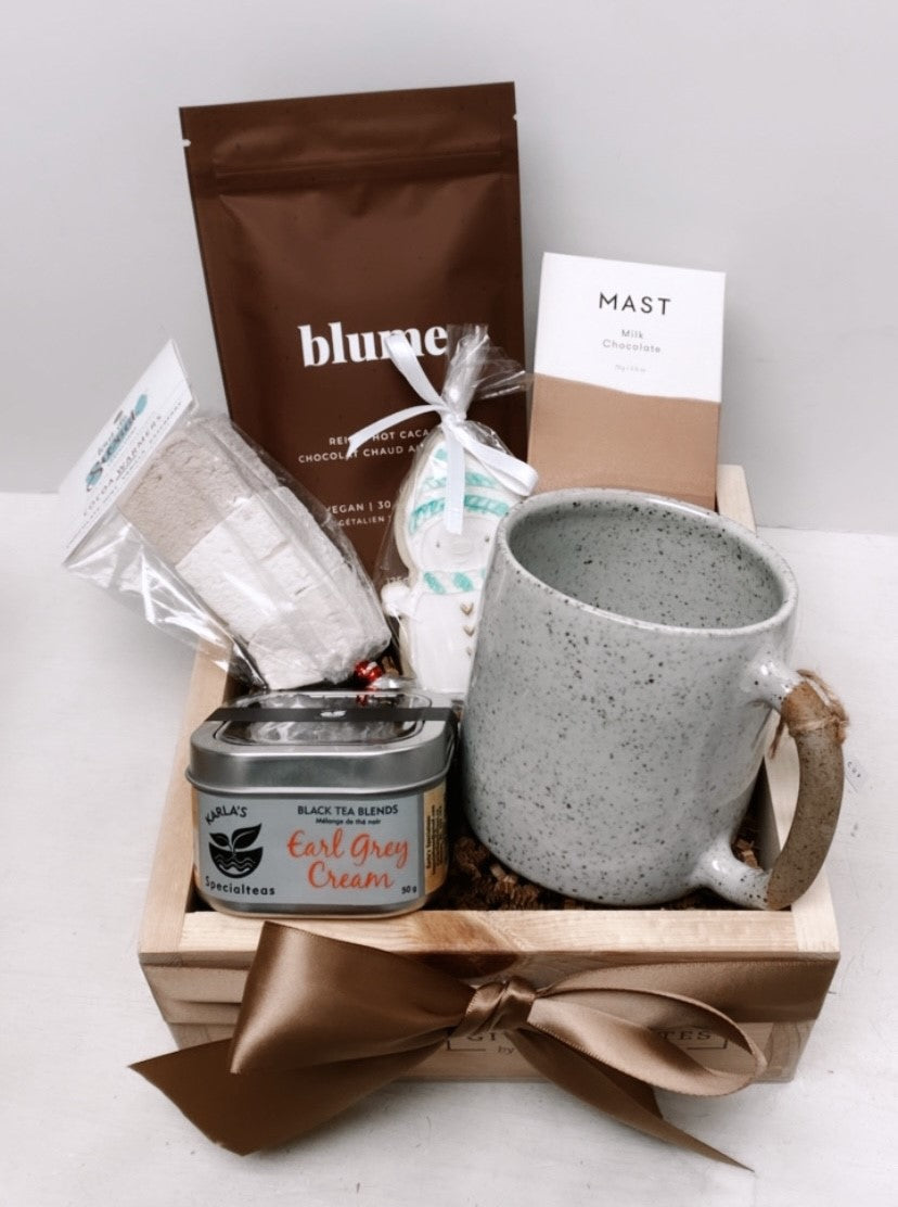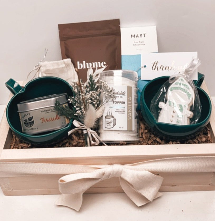 The WARM COMFORTS Giving Crate is a beautiful gift! Imagine relaxing by the fire on a cold evening enjoying this gift. It is the perfect gift of warm comforts for a quiet evening at home.