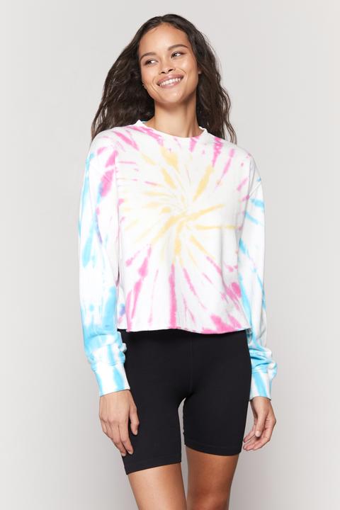 Follow what brings you joy in this vintage inspired Mazzy Sweatshirt. Featuring a raw edge, relaxed crop fit, an all over tie-dye, and classic crew neck, Spiritual Gangster's Follow Mazzy Sweatshirt is perfect for throwing on after a sweaty flow. Made from a Poly/Cotton/Viscose tri-blend.