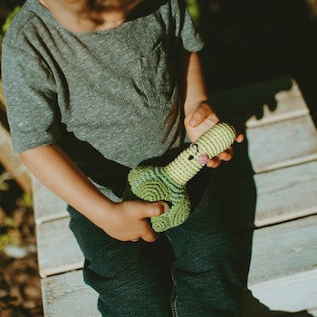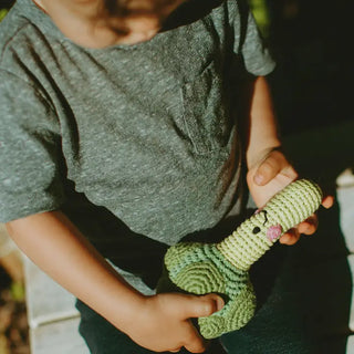 Parents everywhere are loving this plush broccoli kids toy! Hand-stitched with organic cotton yarn, it is soft and lightweight. The rattle inside makes a gentle sound when shaken.
