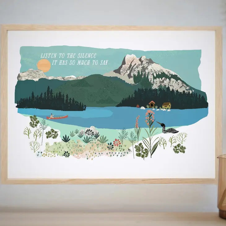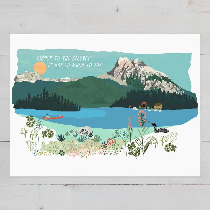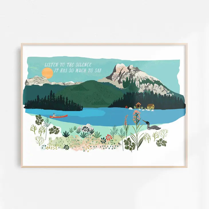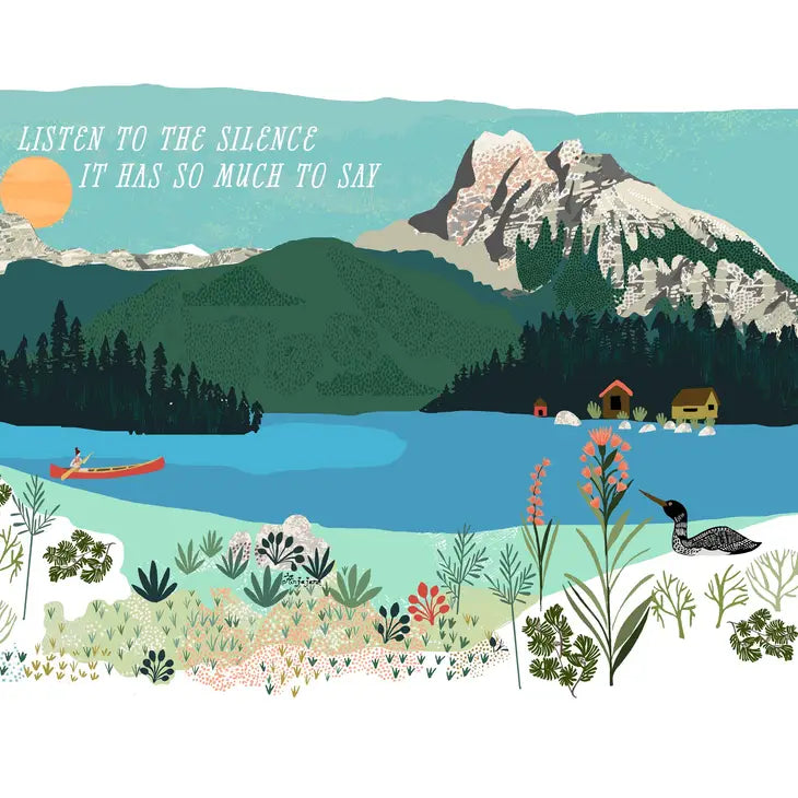 Listen to the silence. It has so much to say. – Rumi An inspirational motivational quote for nature lovers and those fond of silent moments. A tree is planted for every print sold.