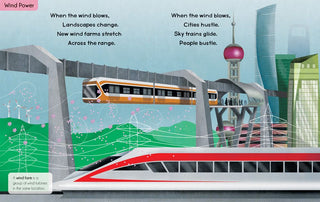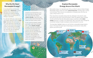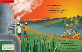 Explore six renewable energy technologies that are used around the world! Accessible verse and lush illustrations introduce children to important information about how we can harness the planet's natural resources including wind, water and sun. Inset boxes define new words like “turbine”, while extensive endnotes further explain the science behind each power source and the benefits of clean energy.