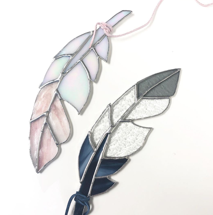 *In store pick up only!* Handmade stained glass sun catchers in the shape of stunning feathers made by Northern Grind Glass Co in Oshawa, Ontario. No two are the same!
