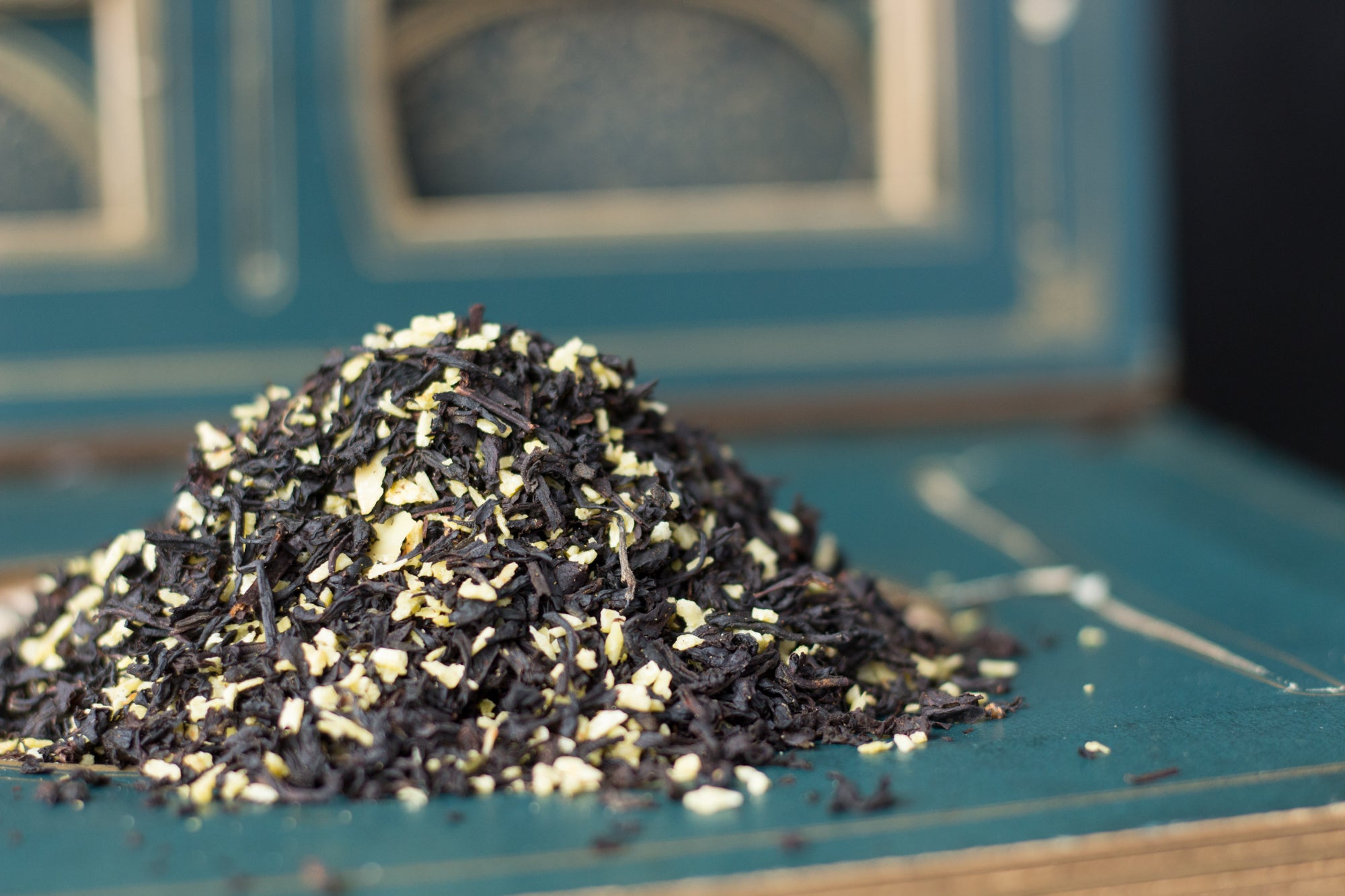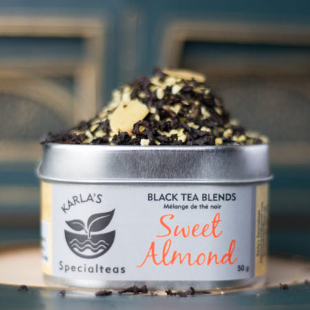 Such a wonderful sweet smell rises from this new black tea blend. Coconut rasps, toasted almond slices and a warm full bodied black tea are really a perfect pairing! The smell is reminiscent of an Amaretto liqueur.