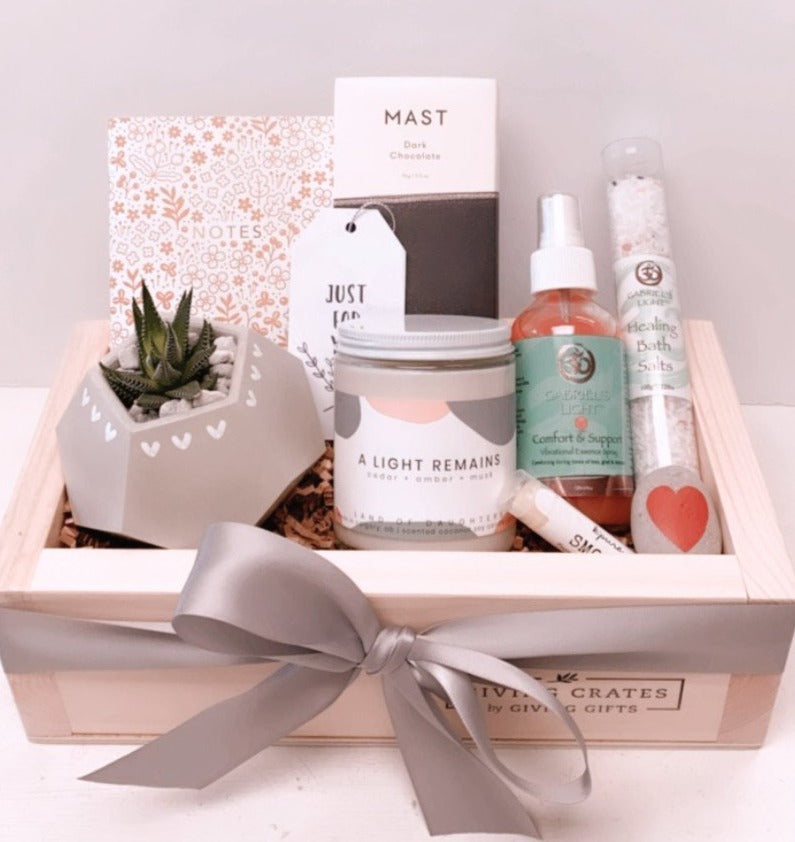 The SYMPATHY CRATE is a beautiful gift when words aren't enough. It is a gift to show comfort and love and help with healing.