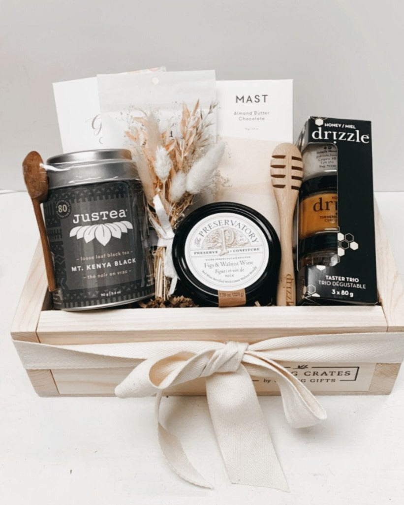 The TREAT CRATE is a truly delicious gift that everyone will enjoy! It includes the best of our locally made gourmet food items packed in a wooden crate.